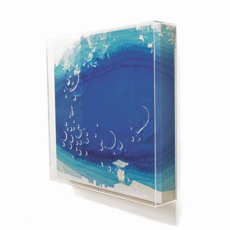 "Fragments of sky" 2007 Material: cloth “cotton”, dye, thread, wood, resin